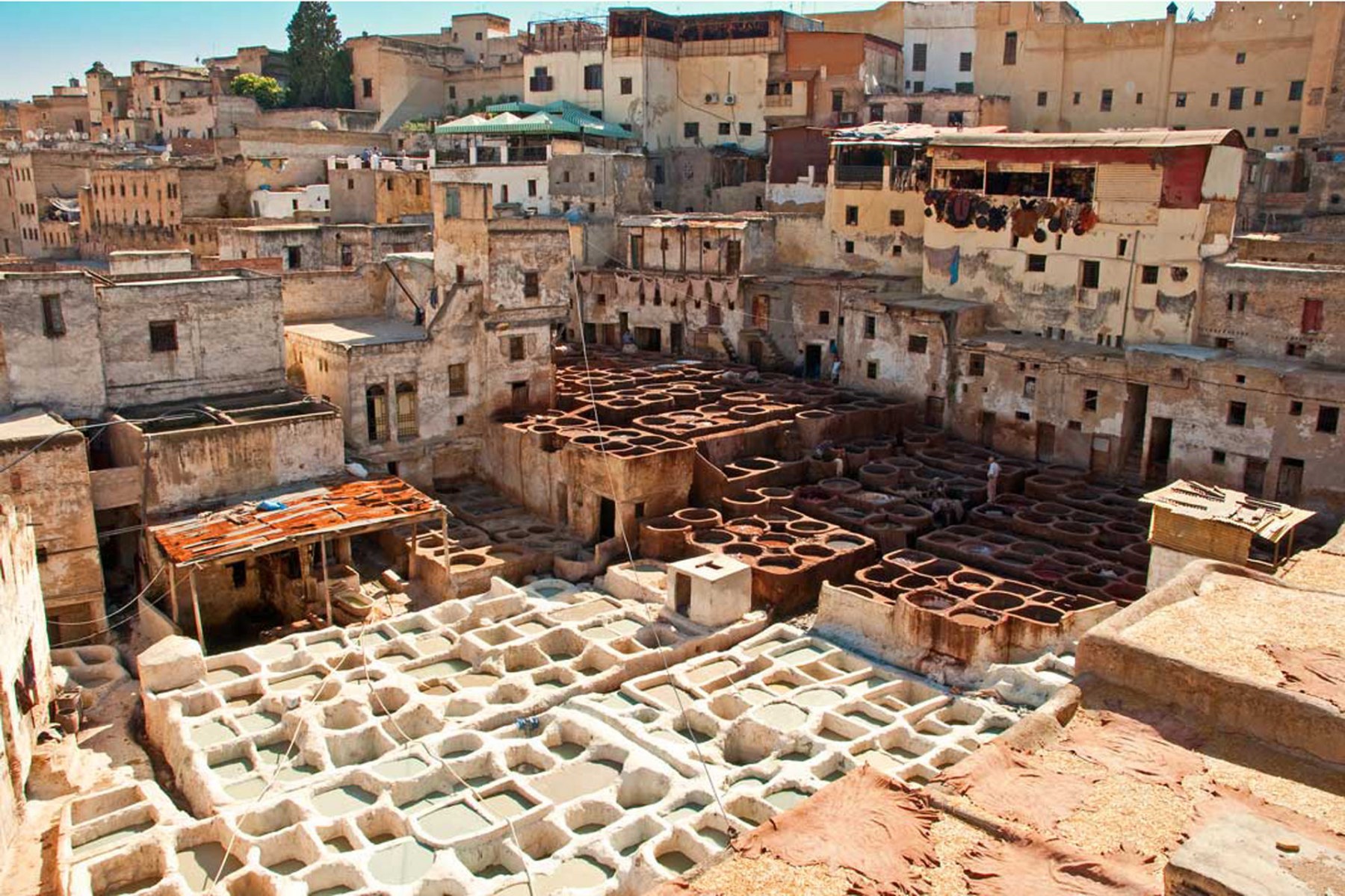 Fotogalerie Marokko 2011 14. Juni 2011 - 4. Tag Bild 6 von 31 Die Becken der Gerber und Färber in Fez von einer Dachterrasse aus