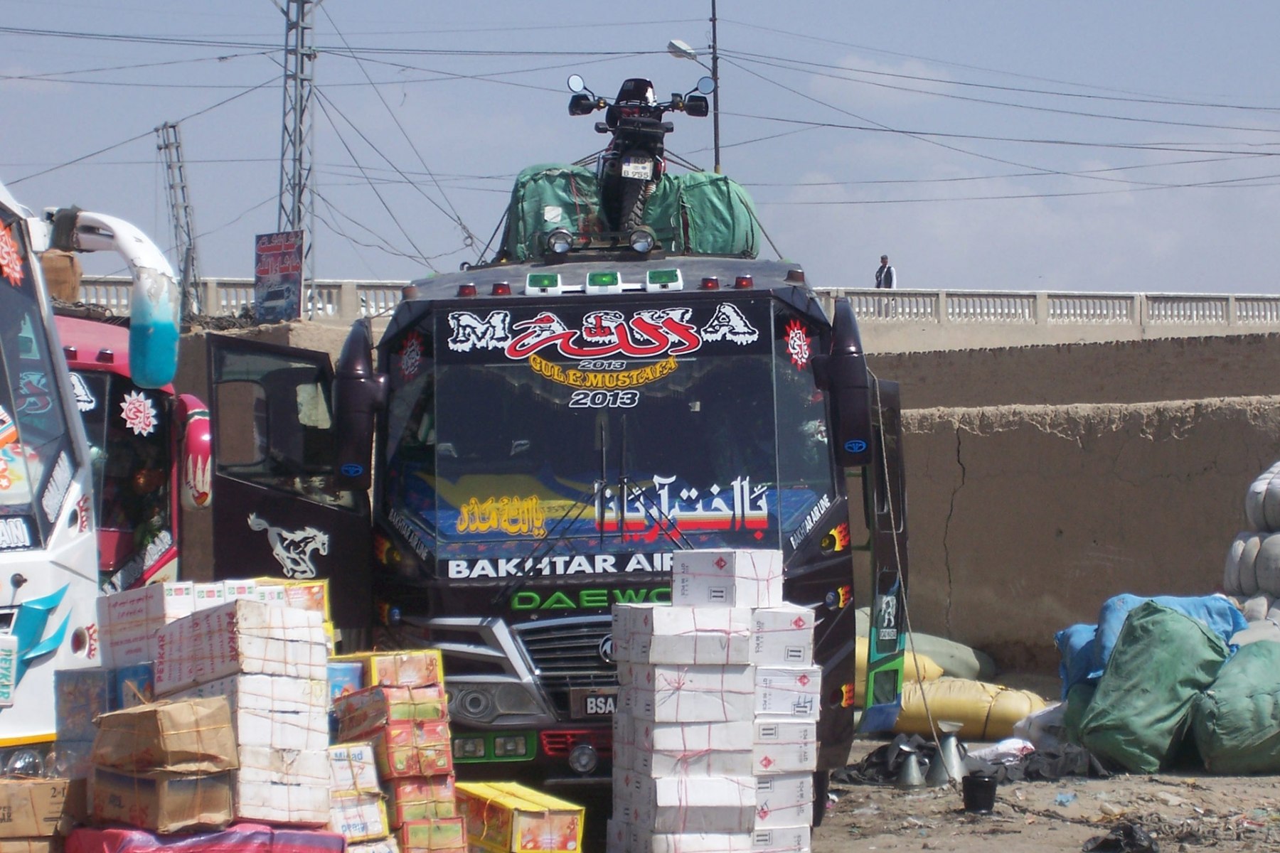 Fotogalerie „SO-Asia Overland“ 27. September 2012 - 24. Tag Bild 28 von 70 Die BMW auf dem Dach des Busses. darum kommen später noch weitere Gepäckstücke und darüber eine Plane