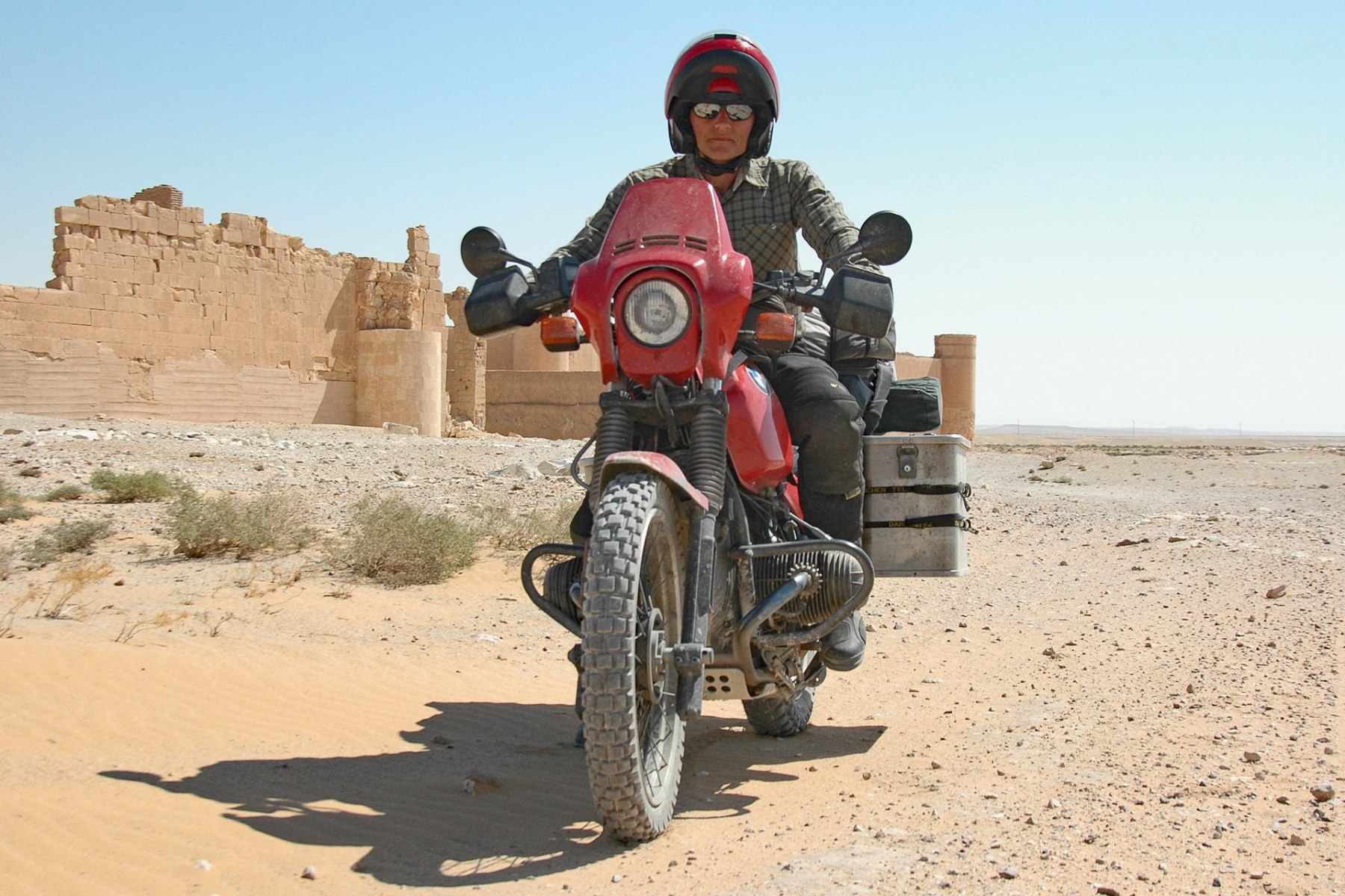 Fotogalerie Syrien 2009 23. August 2009 - 9. Tag Bild 22 von 28 Mit der BMW vor den Mauern des Wüstenschlosses