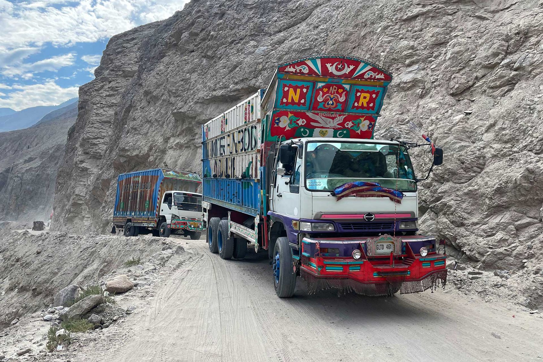 Fotogalerie „Three Highways“ 16. Juli 2023 - 51. Tag Bild 41 von 59 Auf dem schlechten Teilstück des Karakorum Highways, Erdrutsche und Steinschläge stellen immer wieder ein Problem dar